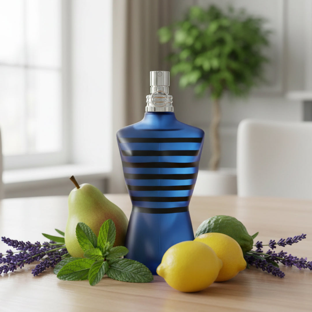 Ultra Male by Jean Paul Gaultier is a bold, seductive fragrance that blends fresh citrus and juicy pear with cool mint and aromatic lavender. Spices and clary sage add warmth at the heart, while black vanilla, amber, and woods create a sweet, powerful finish. Modern and magnetic, it’s a standout scent for confident evening wear.